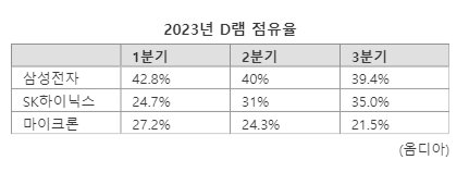 삼성증권 연구원은 "올해 2·4분기부터 SK하이닉스의 HBM은 경쟁사와 큰 차별 요인이고, 3·4분기에는 차이가 확대됐다"며 "보통 메모리의 세대 전환이 1.5년이나 2년인 데 반해, HBM은 1년으로 제품과 공정전환이 짧아 시장을 선점한 SK하이닉스가 유리한 상황"이라고 분석했다. SK하이닉스는 최근 HBM 성장에 힘입어 D램 시장 점유율 1위 삼성전자와의 격차를 4.4%p로 좁혔다.