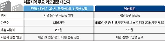 서울 강북권 리모델링 최대어인 중구 신당동 남산타운아파트 역시 내년 상반기 시공사 선정 절차에 돌입할 계획이다. 해당 단지는 지난달 말 조합 창립 총회를 열었다. 지난 2018년 '서울형 리모델링' 시범단지로 선정된 이후 5년 만이다. 전체 가구수는 5150가구다. 이중 리모델링 대상은 서울시 소유 임대 2034가구를 제외한 3116가구다. 리모델링을 통해 총 467가구를 늘릴 계획이다. 추정 사업비는 1조원을 웃돌 것으로 추산되면서 대형 건설사들의 물밑 경쟁도 치열해지고 있다.