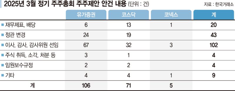 19일 한국거래소 상장공시시스템 카인드에 따르면 올해 3월 정기 주주총회에서 주주제안 안건을 상정한 기업은 40곳으로 전년 동기 32곳 대비 늘었다. 상정된 안건도 전년 동기 87건에서 올해 182건으로 2배 넘게 늘었다.