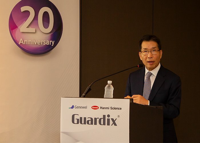 | 한상덕 제네웰 대표이사가 22일 서울 중구 더 플라자 호텔에서 열린 가딕스 출시 20주년 기자간담회에서 발언하고 있다. 동성케미컬 제공 |