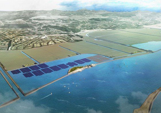 | 새만금 지역에 설치된 수상태양광 전경 신성이엔지 제공 |
