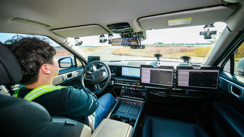 | 현대모비스 연구원이 자율주행 차량을 운행하고 있는 모습 현대모비스 제공 |
