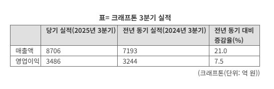 [파이낸셜뉴스] ‘배틀그라운드’ IP 중심의 글로벌 흥행이 견조하게 이어지면서 크래프톤이 창사 이래 처음으로 3분기 누적 영업이익 1조 원을 넘어섰다. 배틀그라운드의 견고한 IP 경쟁력과 인도를 비롯한 글로벌 시장 성장, 그리고 AI 전환 가속화가 실적을 견인했다.