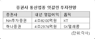 NH투자증권과 하나증권은 통신업종의 내년 실적에 대해 상반된 견해를 내놨다.