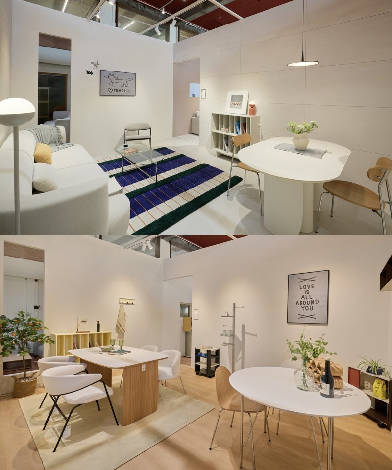 이번 협업 쇼룸은 최근 자신만의 개성과 취향을 중시하는 젊은 소비자들과의 접점을 넓히기 위해서다. 맞춤형 인테리어 자재와 가구로 4개 콘셉트 공간을 꾸몄다. 실제 △스크래치에 강해 반려동물 가구에 적합한 디아망 포티스 벽지를 적용한 '반려묘와 함께 하는 거실' 공간 △목재마루 찍힘 문제를 개선한 에디톤 마루를 적용한 주방 공간 등으로 구성했다.