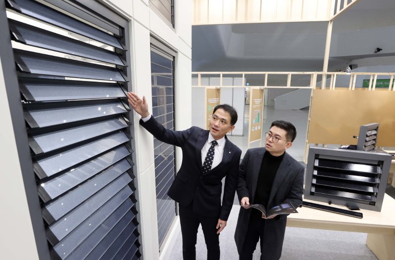 | LX하우시스 직원이 솔라시스템 루버에 대해 설명하고 있다. LX하우시스 제공 |