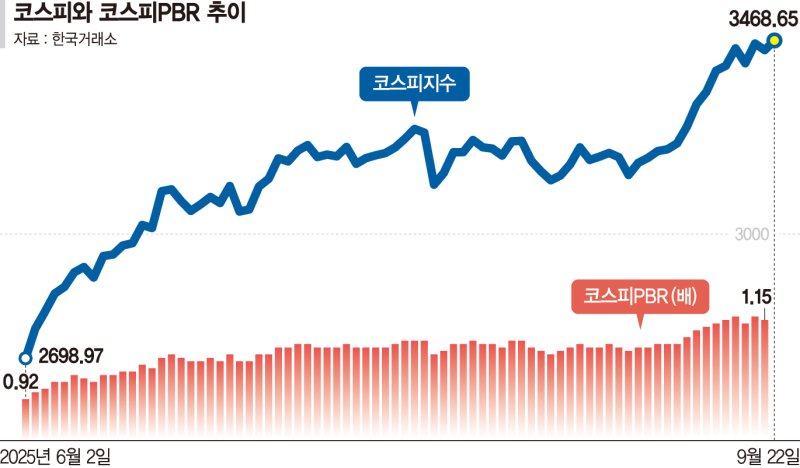 정다운 LS증권 연구원은 "한국 증시가 재평가 받으면서 지수 레벨 적정선에 대한 고민이 필요한 시점으로, 주식시장 활성화 정책 관점에서 글로벌 주요 증시의 PBR 산정식을 따른다면 현재 코스피의 적정 PBR 레벨은 1.47배"라며 "국내 증시 중복상장 할인율 문제를 고려하면, 코스피 적정 PBR은 1.23배로 이에 따른 상단은 3685선"이라고 설명했다.