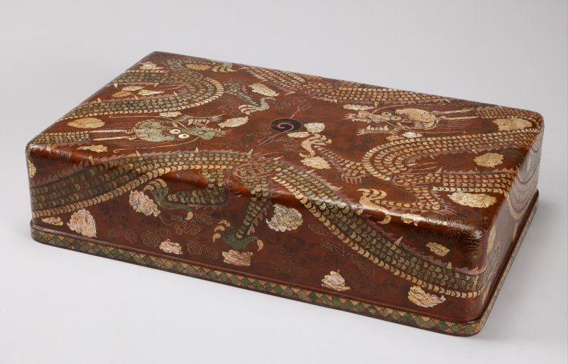 부산 영도구 동삼동 해양클러스터에 위치한 국립해양박물관에서 소장하고 있는 '나전 대모 쌍룡문 함(사진)'은 윗면에 대모로 장식한 쌍룡이 있다. 이 장식은 다른 면까지 연결되게 배치했다. 비늘과 갈기, 배 부분은 어피로 장식하고 구름은 나전으로 표현했다. 뚜껑 하부 가장자리는 어피로 장식한 뒤 옻칠로 마무리했다.
