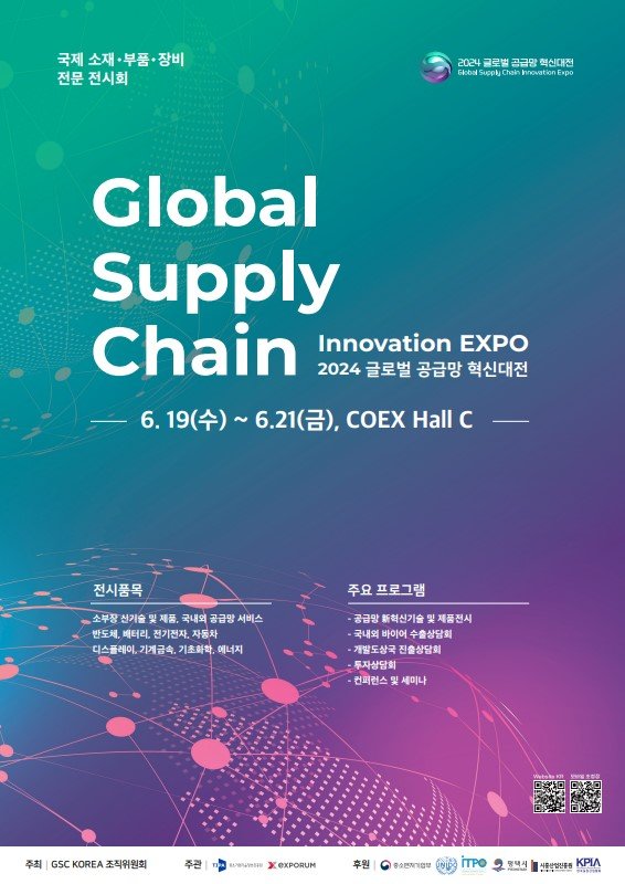 '2024 글로벌 공급망 혁신대전(GSC KOREA 2024, 이하 GSC 2024)'이 6월 19일부터 21일까지 3일간 서울 삼성동 코엑스에서 ‘New Normal, New Supply Chain’ 주제아래 개최된다.