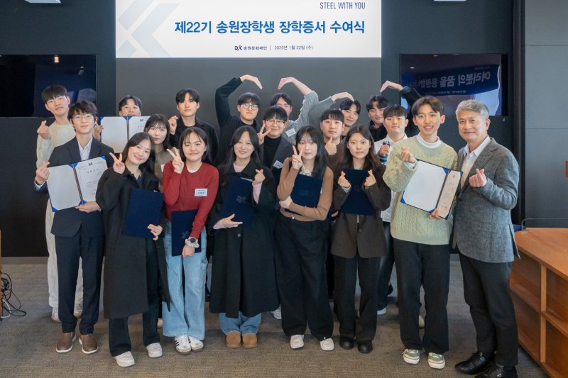 동국제강그룹 산하 송원문화재단이 22일 서울 을지로 본사 페럼타워에서 '제22기 송원장학생 장학증서 수여식'을 가졌다.