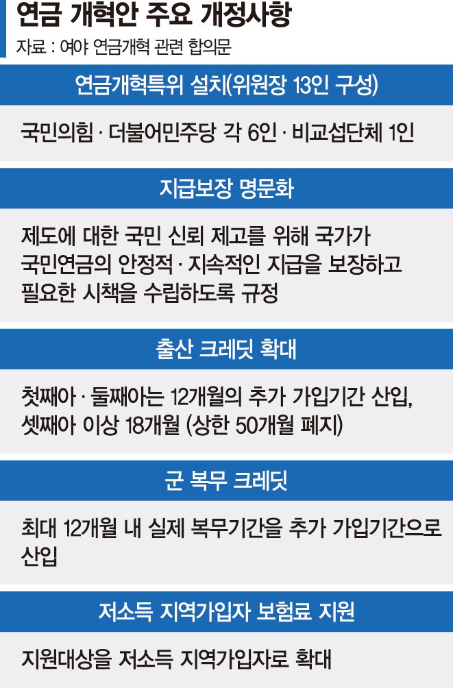 아울러 개혁안에 '지급 보장'이 명문화되면서 국민연금의 안정적·지속적 지급을 보장받게 됐다. 기금고갈로 국민연금을 못 받을 것이라는 청년 세대의 불안을 해소하기 위한 복안이다.
