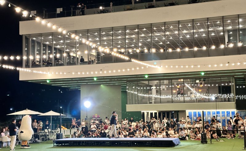 | 부산 영도구의 복합문화공간 피아크의 2층 오션가든에서 야외공연 행사가 열리고 있는 모습. |