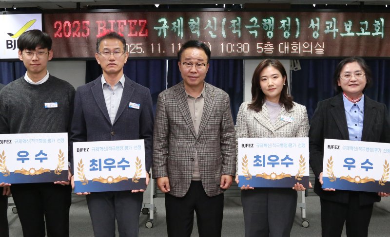 부산진해경제자유구역청은 11일 청사 5층 대회의실에서 '2025 부산진해경제자유구역(BJFEZ) 규제혁신 성과 보고회 및 평가 시상식'을 열고 우수 사례 4건을 선정해 포상했다고 밝혔다.