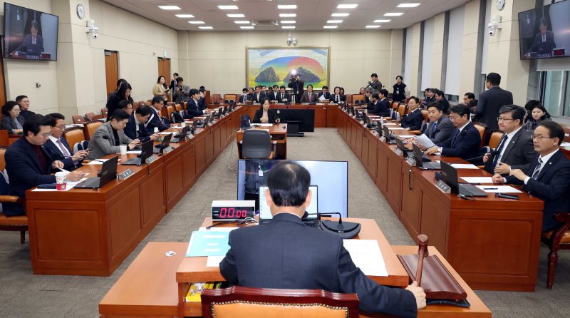 | 윤한홍 국회 정무위원장이 지난 11월 27일 서울 여의도 국회에서 열린 정무위원회 전체회의에서 의사봉을 두드리고 있다.뉴시스 |