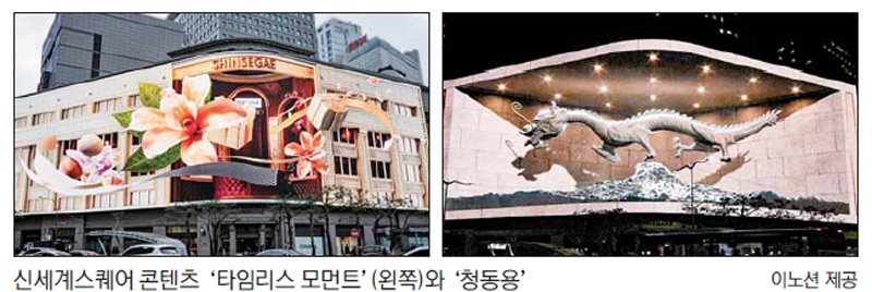 이노션이 서울 명동 '핫플레이스'인 신세계스퀘어에 공개한 미디어아트가 호응을 얻고 있다. 이노션은 최근 신세계스퀘어에 시보 콘텐츠 '타임리스 모먼트'와 한국 국가유산 콘텐츠 '청동용'을 선보였다고 17일 밝혔다.