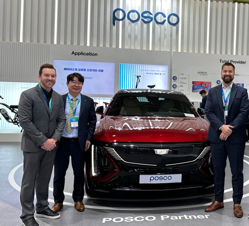 지난 5일에는 토미 호세아 GM 해외사업부문 구매 및 공급망 담당 부사장이 부스를 찾았다. 그는 전시관을 관람하며 포스코퓨처엠의 차세대 양·음극재 기술, 그룹 차원 구축 원료-소재-리사이클링 밸류체인, 원료 공급망 다변화 전략 등을 주의 깊게 살폈다. 엄 사장과 부스 내 전시된 GM 전기차 '리릭' 앞에서 기념 사진을 찍은 호세아 부사장은 배터리 소재 기술력에 대해서도 많은 질문을 했다고 전해졌다.