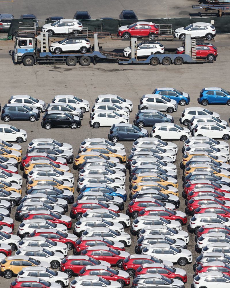 | 지난 2월 19일 경기 평택시 포승읍 평택항 야적장에 수출용 자동차들이 세워져 있다. 뉴시스 |