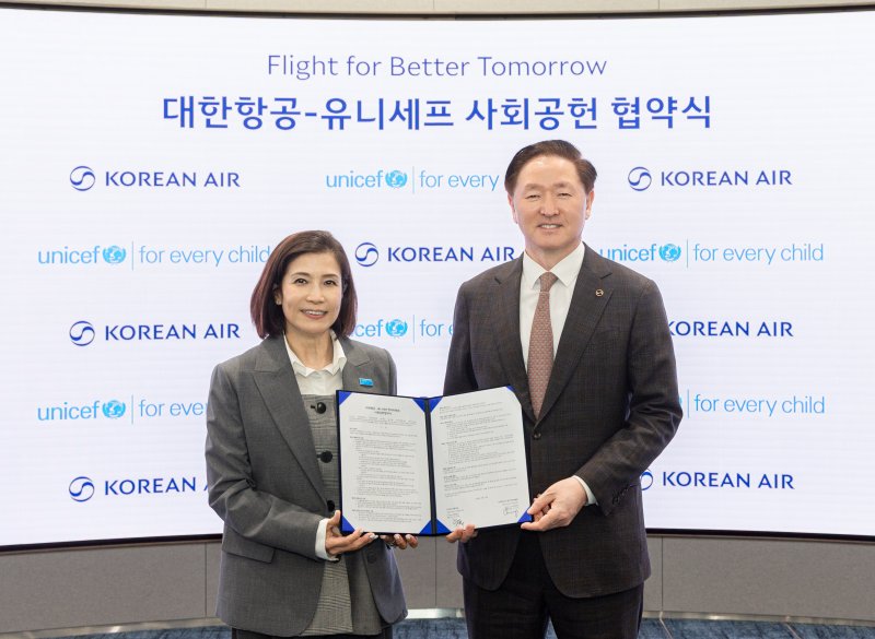 대한항공은 유니세프 한국위원회와 지난 21일 서울 강서구 대한항공 본사에서 지구촌 어린이 지원을 위한 사회공헌 협약을 맺었다고 22일 밝혔다. 이르면 올해 5월부터 여행과 나눔을 동시에 실천할 수 있는 온라인 기부 프로그램인 '플라이트 포 베터 투모로' 캠페인을 공동 시행한다.
