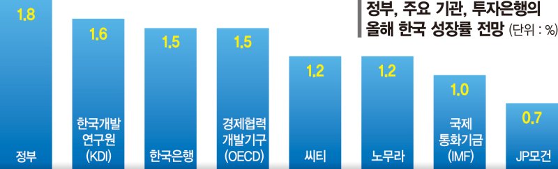 IMF가 전망한 1% 성장은 사실 새로운 수치는 아니다. 글로벌 투자은행(IB) 사이에서는 우리나라 성장률이 1% 안팎에 그칠 것이란 전망이 이미 나왔다.