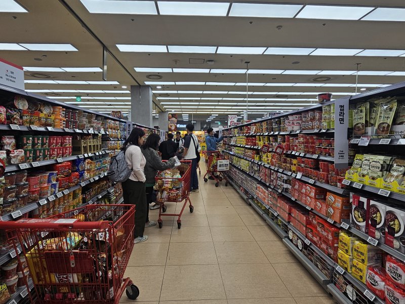 8일 유통업계에 따르면 코로나 엔데믹 이후 외국인 관광객이 대거 늘면서 대형마트도 관광상품화되고 있다. 특히 롯데마트 서울역점은 외국인들의 쇼핑거점이 됐다. 올리브영과 다이소에서는 뷰티제품과 작은 간식거리를 사고, 대형마트에선 대용량 K과자를 사는 게 이른바 'K쇼핑코스'다. 외국인 관광객이 많이 몰리면서 관광객 전용 상품에 특화존까지 마련됐을 정도다.