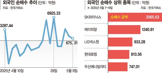 지난 7~9일 외국인은 실적 개선 종목 중심으로 매수세가 뚜렷했다. 이 기간 SK하이닉스를 2066억원어치 가장 많이 매집했다. 이어 에이피알(1241억원),