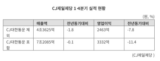 CJ제일제당은 올해 1·4분기 연결기준(자회사