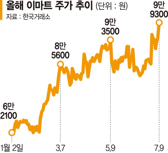 김명주 한국투자증권 연구원은 "정부의 추경 등으로 소비 심리가 살아나고 있는 점을 고려하면 하반기에 시장의 낮은 기대를 넘어서는 회복세를 보일 전망"이라며 "이마트의 주가가 가장 양호했던 2021년과 같이 올해도 관광수지 적자폭이 줄어들고 내부소비 진작을 위한 추경이 진행되는 등 우호적인 산업환경 덕분에 하반기 이마트 주가는 양호한 흐름을 이어갈 것"이라고 덧붙였다.