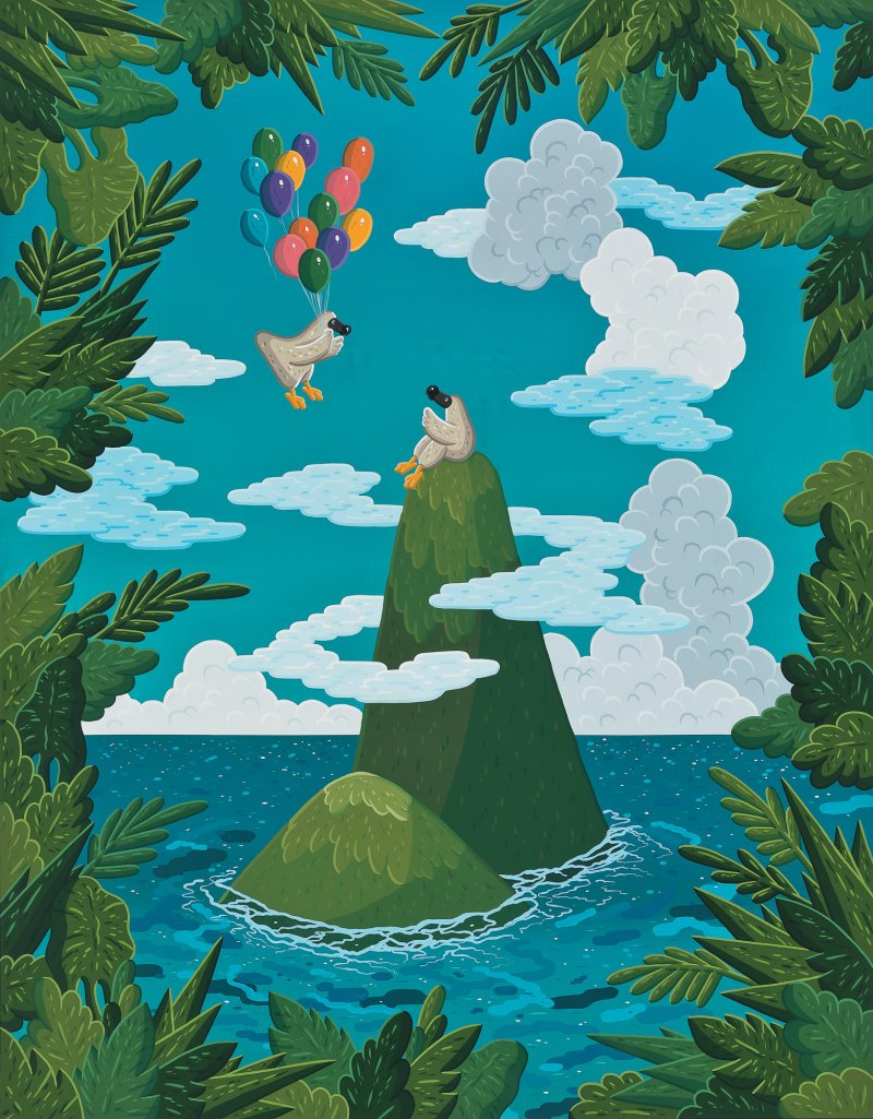 2023년 제작된 'Rendezvous(사진)'에도 이런 특징이 잘 나타난다. 영어로 '만남' 또는 '만날 약속'을 뜻하는 제목의 이 작품에서 홀로 남겨진 채 고립되어 도움의 손길을 기다리던 새에게 다른 새가 풍선다발의 힘을 빌려 다가오고 있다. 바다 한 가운데 높다랗게 솟아 올린 지형과 이를 감싼 구름들은 어려운 현실을, 먼 곳에서부터 찾아왔을 새와 다채로운 색감의 풍선들은 희망의 메시지를 은유한다.