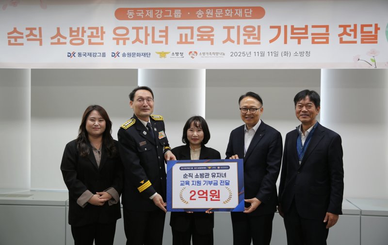 동국제강그룹은 세종시 소방청에서 '소방가족희망나눔 기부금 전달식'을 열고 사단법인 '소방가족희망나눔'에 후원금 2억원을 전달했다고 11일 밝혔다. 이번 기부금은 순직 소방공무원의 유자녀 교육과 생활안정 지원을 위해 사용될 예정이다.