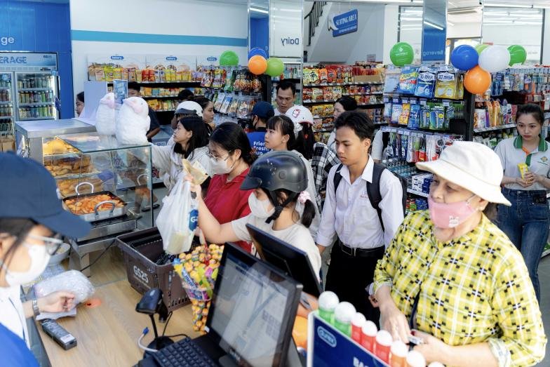 | GS25의 베트남 내 특화매장인 'GS25버쥐링-고콩점'에서 현지 고객들이 상품을 구매하고 있다. GS리테일 제공 |