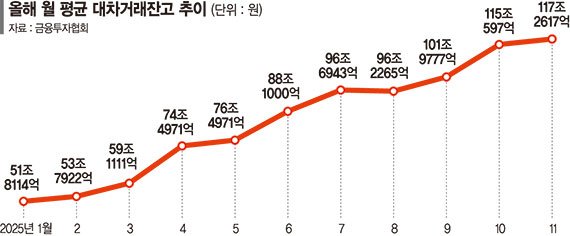 지난 9월 101조9777억원이후 사상 최대치 경신이 이어갔다. 대차거래잔고는 보유 주식을 제3자에게 빌려준 금액으로 통상 공매도 수요를 가늠하는 선행지표로 해석된다. 공매도는 대차잔고에 쌓여 있는 주식을 빌려 시장에 매도하는 방식으로 이뤄지기 때문에, 대차잔고가 많을수록 공매도를 실행하기 쉬운 환경이 조성된다.