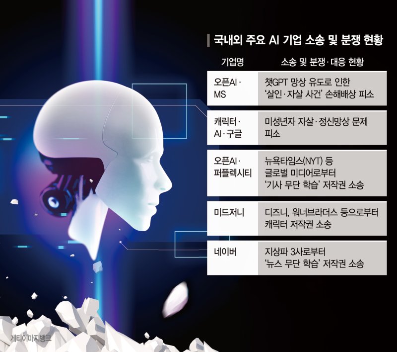 글로벌 인공지능(AI) 업계가 '소송 리스크'에 직면했다. '혁신'이라는 명분 아래 묵인됐던 데이터 무단수집, 저작권 침해 문제와 함께 AI 챗봇의 예상치 못한 부작용이 법적 심판대에 오르면서다. 미국에서만 60건 이상의 AI 관련 저작권 소송이 진행 중이며, 국내에서도 법적 공방이 격화되고 있다.