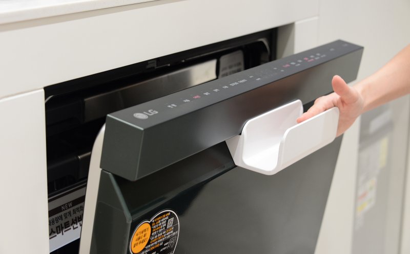 | 고객이 LG전자의 '식기세척기 이지핸들(도어)'을 이용해 식기세척기 문을 열고 있다. LG전자 제공 |