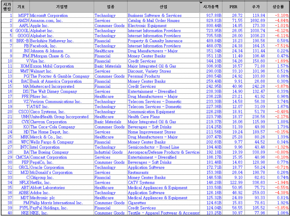 아마존 4.64%, 마이크로소프트 3.10%, 구글 6.11%, 애플 1.01%, 페이스북 7.51%, 넷플릭스 1.94%가 하락함으로써 이 기업들을 포함한 특정 섹터 펀드에 매물이 집중된 듯 하다.