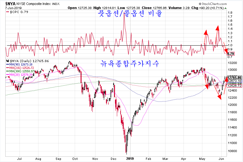 5월말 풋옵션 과열 국면과 함께 하락했던 뉴욕 시장은, 옵션 시장이 콜옵션 우위 국면의 전환과 함께 4일 연속 상승하였다.