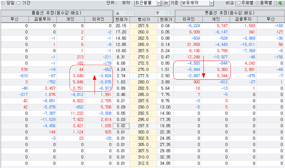 쥬라기: 첫날부터 개인이 옵션시장에서 롱포지션을 늘려서인지,
