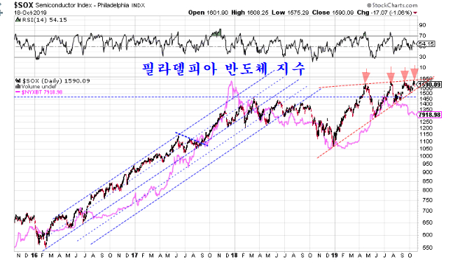 상승쐐기형의 반도체 지수