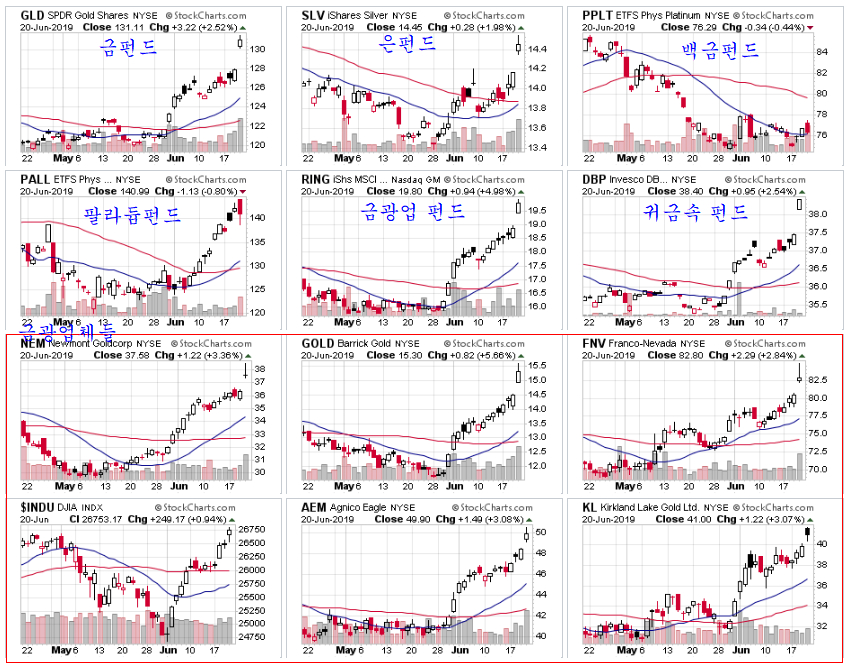 금과 은 가격이 급등하며 금펀드 2.52%, 은펀드 1.98%, 금광펀드 4.98%급등하는 등 금광 기업들 주가가 갭상승하고 있다.