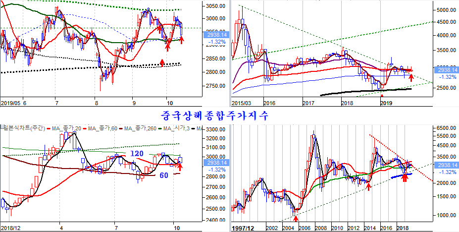 올 1분기 강력한 상승으로 하였던 중국 상해종합지수는 장기추세선인 60주 평균의 지지와 120주 평균의 저항으로 지금까지 세차례 등락을 보이며 조정을 받아 왔다.