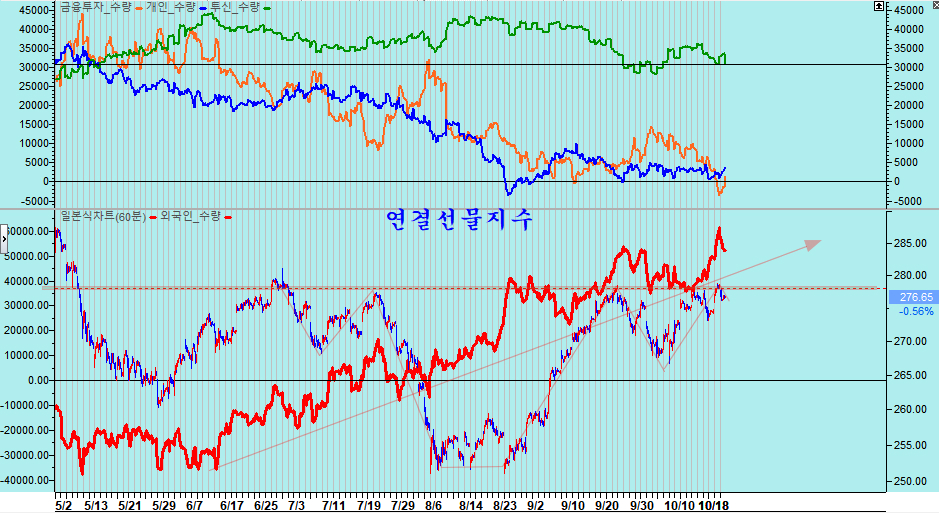 한국 시장은 옵션을 사이에 두고 속임과 변칙이 이어지고 있으나 결국 세계시장의 흐름을 따라 움직일 것으로 보이며, 지금은 옵션을 쫒으며, 일반을 속일 요량으로 하락을 만드는 외국인의 매매 특성을 연구하여 우량한 기업을 싼 값으로 적극 매수할 때이다.