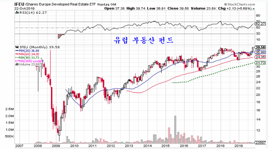 적극적으로 유럽의 금융주 펀드 EUFN, 소형주 펀드 IEUS, 그리고 부동산 펀드 IFEU 등 유럽 자산시장에 주목할 필요가 있다. 장기간 유로화가 약세에 머문 후 장기적으로 통화 강세와 함께 장기 상승이 기대된다.