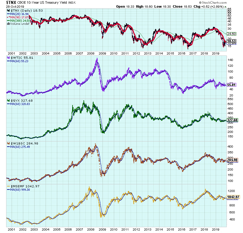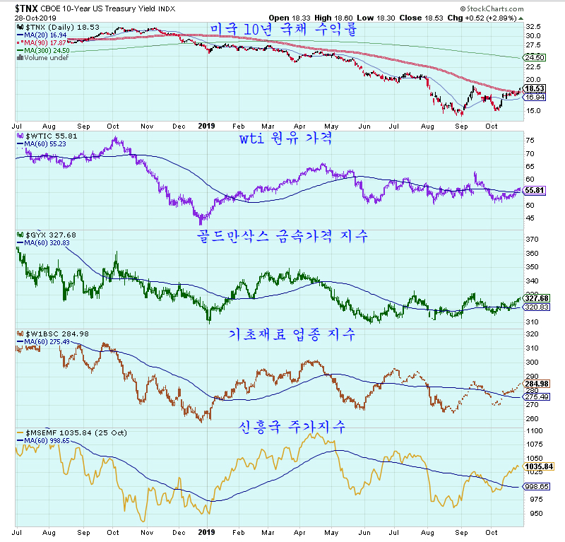 그래서 채권수익률이 오를 때 원유가격이 오르고 금속 가격이 오르고 기초재료 업종의 주가가 오르고 신흥국의 주가가 오른다.
