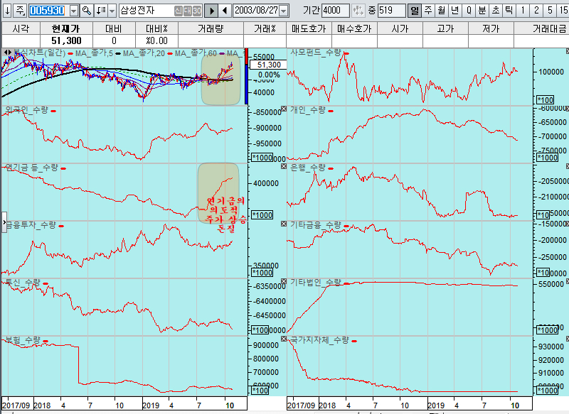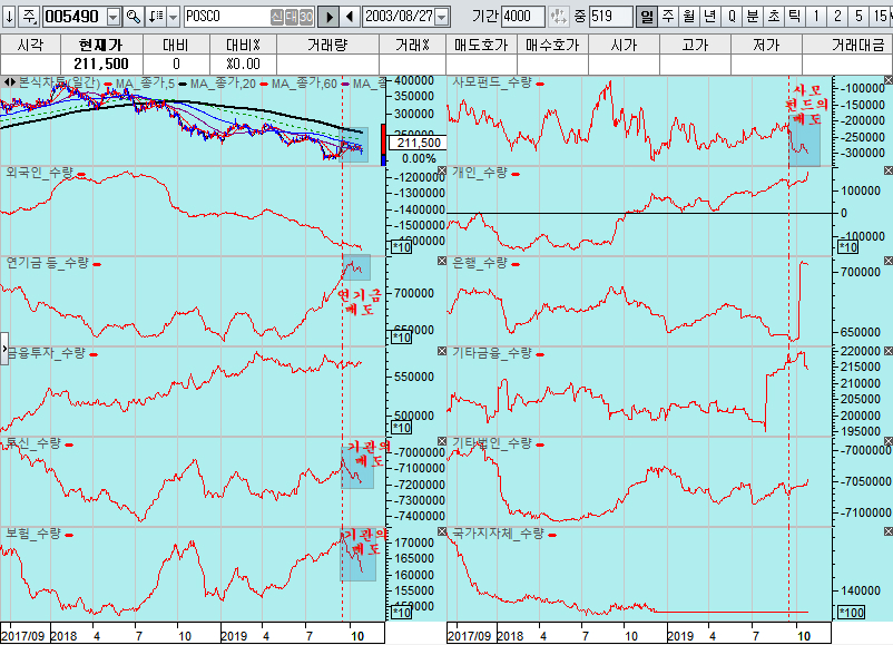 종목의 주가 움직임을 보면 연기금이 사면서 오르는 종목이 많고 하락하는 기업들은 대부분 연기금이 팔아서/ 기관의 추종 매매와 함께 하락하는 기업이 많다.