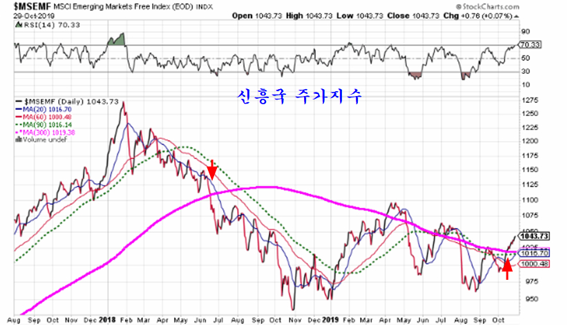 아울러 중국 주식 비중이 높은 신흥국 주가지수도 지난해 7월 60주 평균을 하향 돌파했으나 10월 60주 평균을 상향 돌파하며 장기 추세 상승 국면으로 전환되는 모습이다.