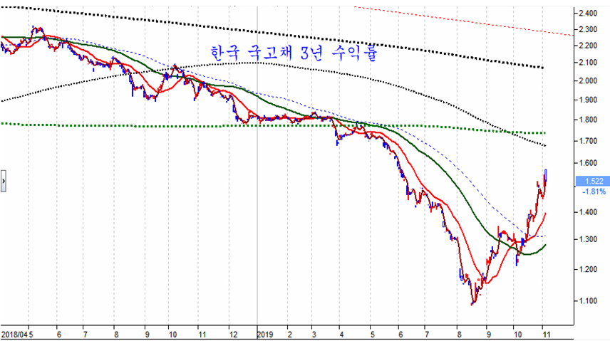 미국의 금리 인하와 이튿날 중국 NBS 제조업 지수가 감소를 나타내자 이상 급락을 했던 미국 국채 수익률이 3일 연솔 상승하면서 제자리를 찾았다.