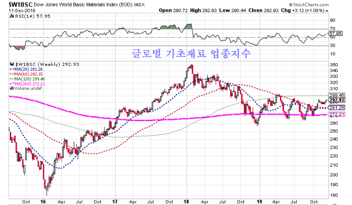 2019년 신흥국 주가지수에 중국 본토 주식을 편입 비중 확대, 그리고 사우디아라비아와 아르헨티나 주식이 신규 편입되었다. 이에 따라 기업가치와 무관하게 신흥국지수의 비중 조정 과정에서 영향을 받아왔던 신흥국 주가지수와 기초재료 섹터의 주가가 동반 상승이 시작되고 있다.