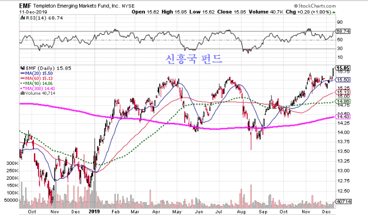 11월 신흥국 지수에 중국 본토 주식을 편입하는 비중 조정 과정이 마무리된 후에도, 사우디아라비아의 아람코 상장과 한국의 12월 선물 옵션 만기를 앞두고 더딘 행보를 해 왔던 신흥국 펀드는 11일 비교적 강한 상승을 나타냈다. 긴 조정을 마무리하고 상승을 하는 의미가 있다.