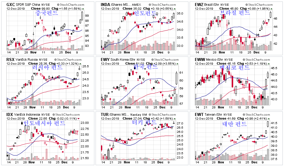 12일 뉴욕 시장에서 신흥국 펀드가 이틀째 급등이 이어지는 가운데 블랙록이 운용하는 한국 펀드 EWY는 3.55%가 상승하였다.