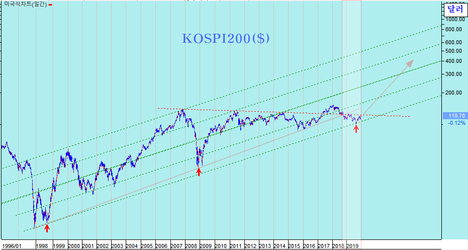장기간 하락이 이어진 한국 주식 시장은, 종목들을 보면 1998년 외환위기, 2008년 금융위기에 이어 위기 수준에서 볼 수 있는 저평가 수준에 있다. 2018년 4분기 지지 추세 하단을 이탈하는 하락과 함께 극심한 저평가가 심화되어 있고, 이제 이런 위기 수준에서 보았던 저평가 국면으로부터 경기 회복과 함께 장기 상승이 기대되는 멋진 모습이다.