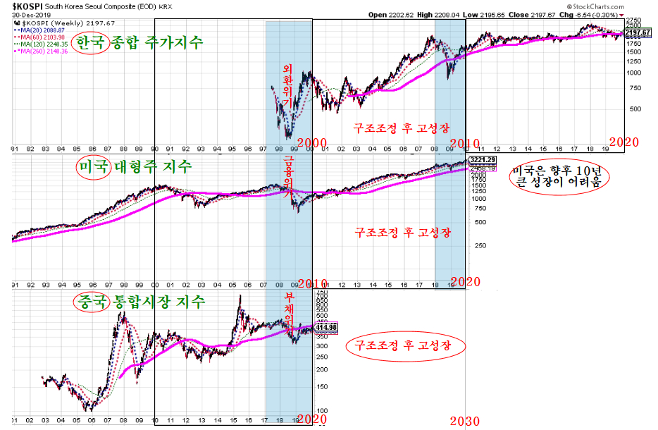 따라서 구조조정을 거친 중국은 다음 10년인 2020~2030년 고성장 국면으로 진입하게 되고, 2000년대 크게 올랐던 한국을 비롯한 신흥국이 2010년대에 크게 오르지 못한 것을 보면 2020년대는 미국 주식은 크게 오르지 않은 채 정체할 가능성이 높다.
